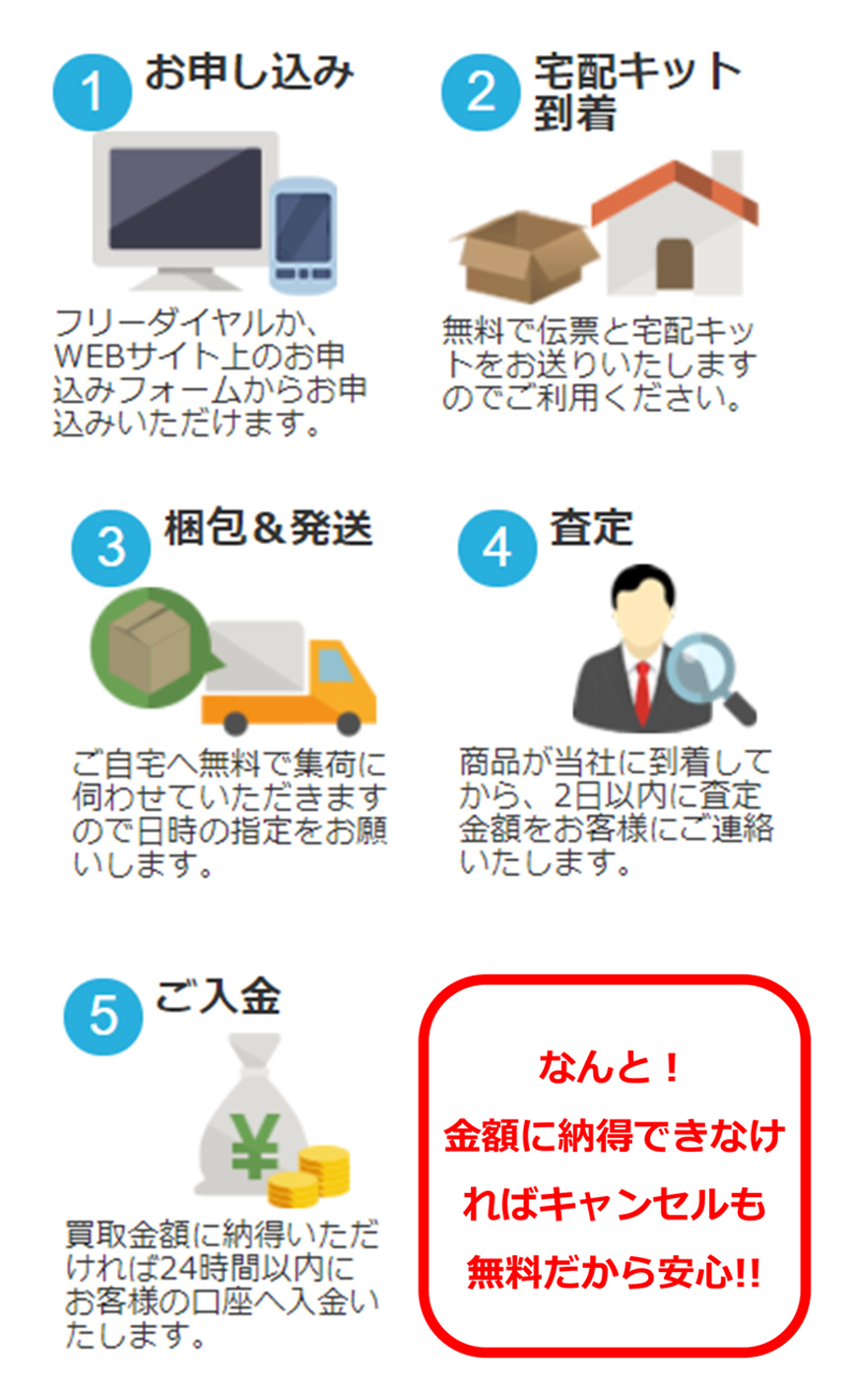 送料、査定料、梱包代はすべて無料!キャンセルもOKで安心!