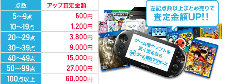 不要なソフトがあるなら、まとめて売るのが正解!ゲーム買取ブラザーズでは、買取点数が多いほど金額アップ!賢く高価買取するなら、ぜひまとめ売りを!