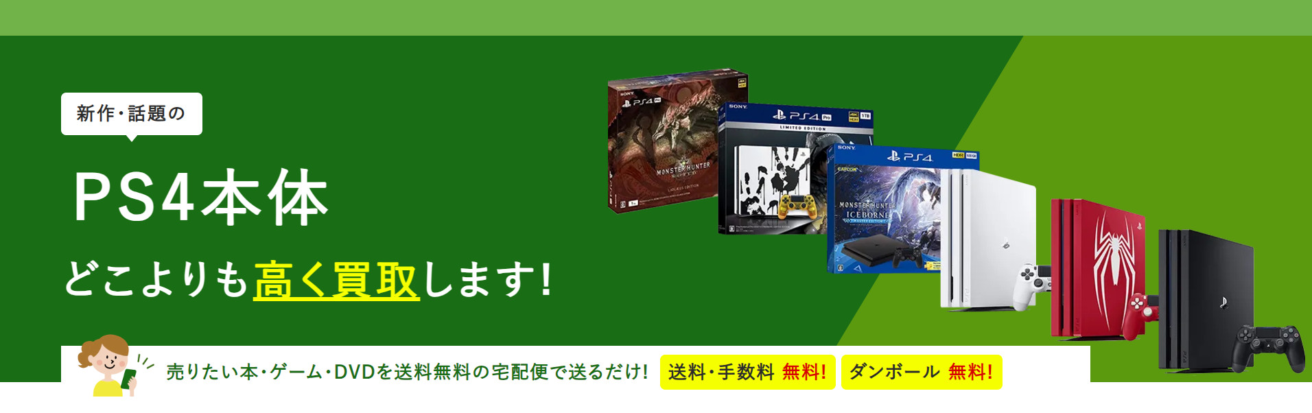 買取額比較で業界トップ!無料の梱包パックに入れるだけで手続き簡単♪商品到着後、最短即日でお支払い可能だからとっても便利!さらに今なら買取金額が30%UPするキャンペーン実施中!PlayStation4を売るなら、迷わずココがおすすめ!